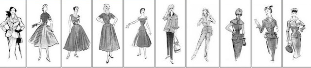 Nesta década, a tendência ditava o uso de cinturas finas, saias com pregas finas, presas por penses, blusas justas, chapéus (por vezes substituídos por turbantes) e luvas.